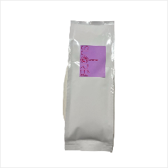肌に触れたときの刺激を解消するために、砂糖の粒を0.25mm以下の微細な粒子に整え、独自の技術で製造しています。このため肌ざわりがなめらかで、少しの水分を含ませると、すぅっと粒が溶けていきます。