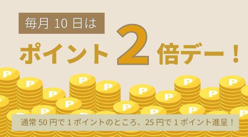 皆様へ日頃の感謝の気持ちを込めまして、大変お得なダブルポイントキャンペーンを開催します。
