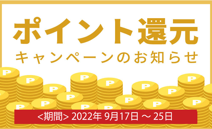 ポイント還元キャンペーンを実施いたします! たまったポイントは1ポイント1円として商品のお買い物にご利用いただけます。