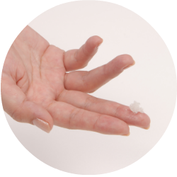 お風呂を出るとき、気になる部分にすり込むように、シュガーリング。乾燥がひどい場合は洗い流さずに、タオルで軽く水分を押さえることでザラつきやかさつきもツルツルに。