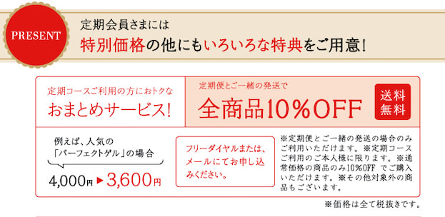 美しく健やかな肌をキープするには、 毎日続けて使うことが大切。そこで、 続けやすいおトクな料金と買い忘れの心配もない「定期コース」をご用意しました。