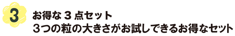 3つの粒の大きさがお試しできるお得なセット