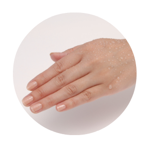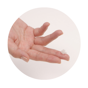 2. Take about one third of a teaspoon of Sucre in your fingertips and mix with water to form a paste. *How much to use will differ depending on the area you are treating and your skin’s condition.