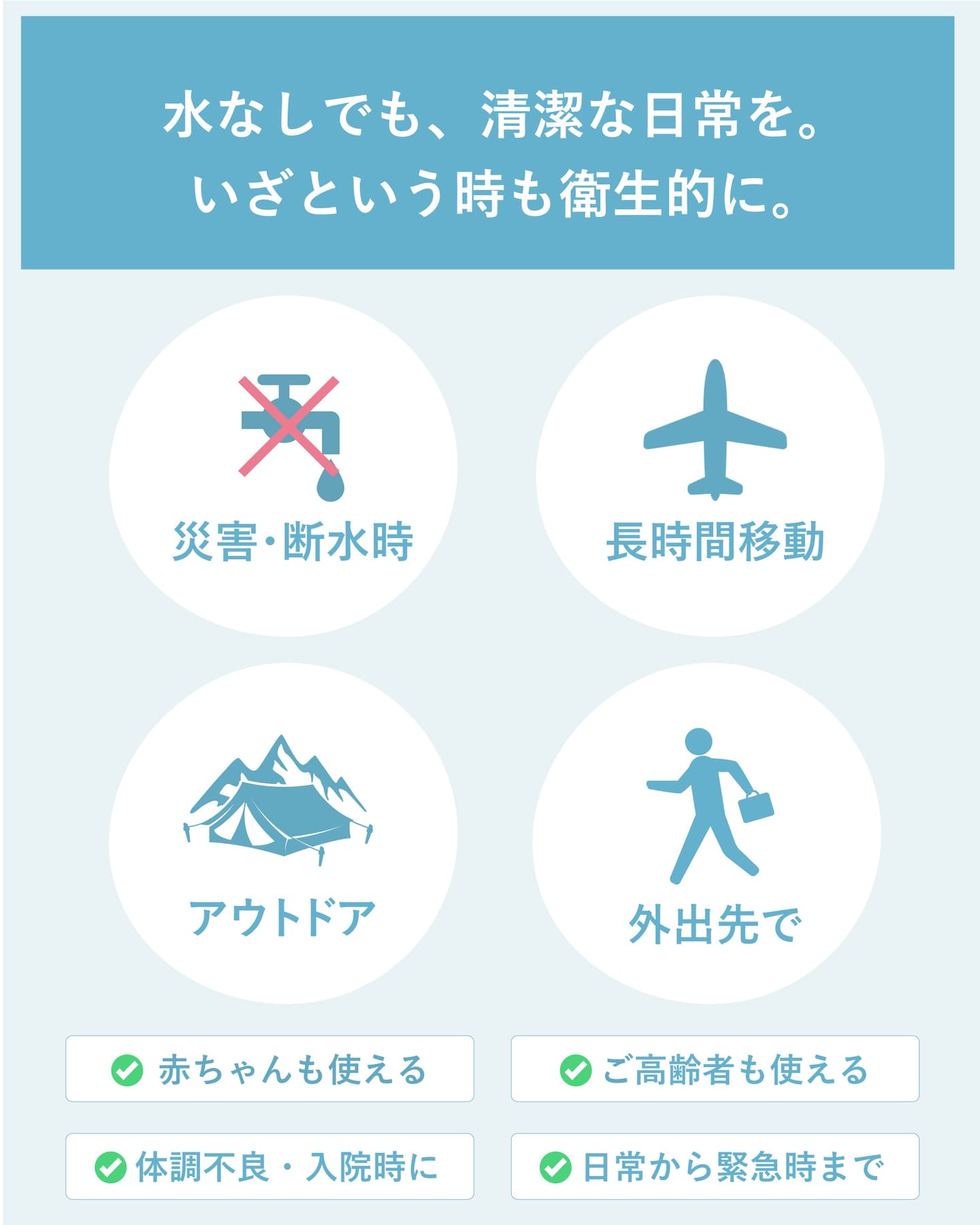 災害時に清潔な生活環境を保ち、避難生活を快適に過ごすのに不可欠なアイテムです。